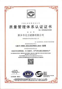 當前位置 : 主頁 > 關于我們 > 榮譽資質 -北方濾器ISO質量管理體系認證證書中文